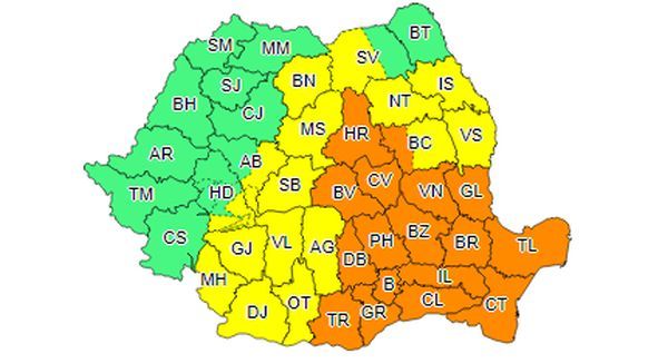 Administrația Națională de Meteorologie a emis un Cod Portocaliu de vreme rea pentru zona de sud-est a țării, fenomenele vizate fiind intensificări puternice ale vântului, vijelii, grindină, cantități de apă însemnate. Intervalul de valabilitate este miercuri, 03 iulie, ora 10.00 – joi, 04 iulie, ora 03.00.