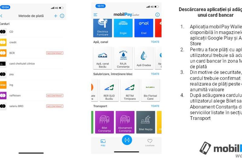 Premiera constă în faptul că se pot achita digital inclusiv abonamentele nominale, care în mod tradițional se achiziționau numai la casa de bilete, deoarece mobilPay Wallet oferă posibilitatea de verificare a numelui clientului direct în aplicație. Astfel, clientul selectează Abonament Constanța din lista serviciilor de Transport, iar în cazul în care verificarea profilului nu a fost făcută anterior de client în secțiunea Date Personale/Verificare Profil, este îndrumat să introducă datele și pozele solicitate care vor fi verificate și după caz, aprobate sau respinse manual de operatorii aplicației.Pentru a plăti cu ajutorul portofelului electronic mobilPay Wallet, clientul alege tipul biletului sau abonamentului și linia dorită, confirmă plata alegând unul din cardurile Visa sau Mastercard deja salvate în aplicație și primește imediat pe e-mail și SMS confirmarea plății însoțită de seria și durata de valabilitate a titlului de călătorie cumpărat. Plata realizată va fi salvată automat în aplicație cu toate detaliile, pentru acces imediat și plăți viitoare și mai rapide. După prima plată, pentru toate abonamentele, clienții primesc notificare de reamintire înainte de expirarea abonamentului, cu posibilitatea reînnoirii printr-un singur click.