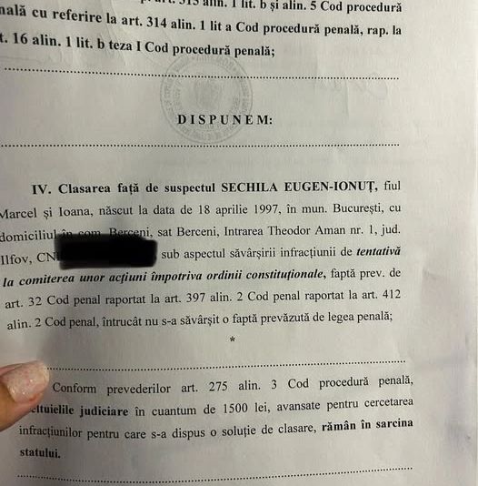 Astăzi a apărut ordonanța de clasare în legătură cu tentativa de atac la ordinea constituțională. Iată încep să pice bucată cu bucată aceste așa-zise rechizitorii, aceste așa-zise acuzații care se aduc lui Călin Georgescu și oamenilor care au îndrăznit să-l susțină și să ]i fie alături într-un demers pe care și noi l-am susținut și îl susținem în continuare - acela de a trezi oamenii în conștiință și de a ne lua țara înapoi. Evidența ordonanței de clasare, sper să îi facă pe cei care încă mai cred că domnul Călin Georgescu a făcut ceva în neregulă, să realizeze că de fapt acest stat a anulat în mod ilegal alegerile.