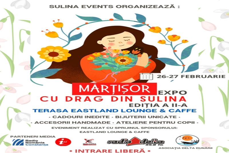 Expoziția ”Mărțișor Cu Drag Din Sulina”, are loc pe 26 și 27 februarie între orele 11:00 și 18:00 pe terasa Eastland Lounge & Caffe.