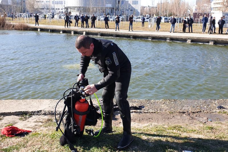 Un apel la 112 a anunțat că un autoturism, în care se aflau un adult și un copil a căzut în lacul Tăbăcărie, în zona Pavilionului Expozițional.