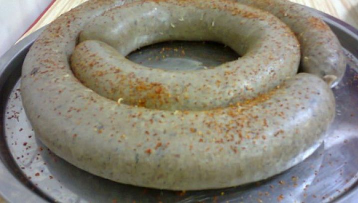 6. După ce sunt gata, se amestecă cu com- poziţia de carne şi măruntaie, se condimentează cu sare, piper, nucşoară şi ienibahar şi se pun în intestinele spălate şi curăţate.
