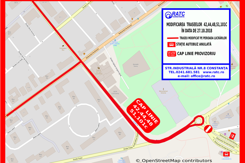 Regia Autonomă de Transport în Comun Constanța anunță publicul călător că, sâmbătă, 27 octombrie, în intervalul orar 08.00 – 18.00, traseul liniilor 42, 44, 48, 51 și 101C va fi modificat.