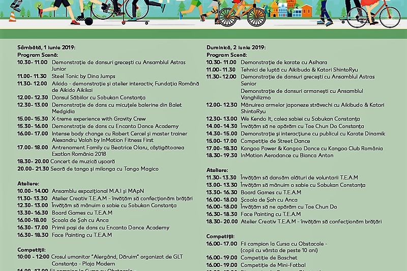 De Ziua Copilului, cei mici îi scot pe părinți la mișcare. Prima ediție a festivalului „Bucurie în Mișcare Constanța” se va desfășura în Piața Ovidiu, sâmbătă, 1 iunie și duminică, 2 iunie, de la ora 10.00. Invitații speciali ai festivalului sunt Beatrice Olaru – câștigătoare Exatlon 2018 și Ivan Patzaichin – multiplu campion olimpic și mondial.