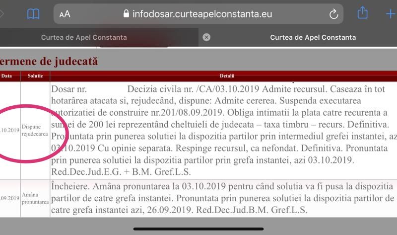 „În fața primei instanțe am reușit să convingem că există aparența de nelegalitate a autorizației din multiple motive: lipsă titlu valabil asupra terenului, neîndeplinirea de către arhiepiscopie a obligației impuse de autoritatea de mediu, aceea de a amenaja un parc în suprafață de 1.500 mp în Faleză Nord și altele, mai tehnice”, au precizat reprezentanții asociației.