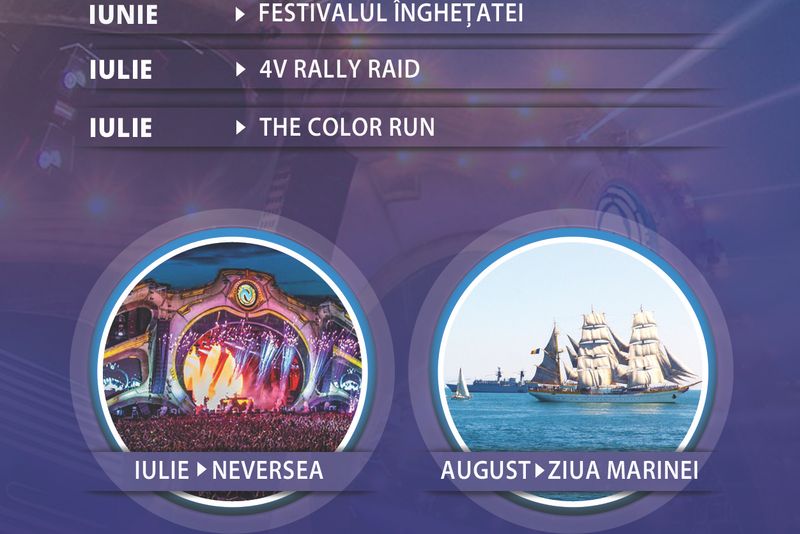 Printre primele evenimente anunțate se regăsesc deja cunoscutele Neversea, Sunwaves, The Color Run sau Festivalul Scoicilor, dar și Pontus Euxinus - Povestea Vinului Dobrogean sau Dacia Clasic – 50 de ani de la începerea fabricării modelului Dacia 1300.Începând cu luna martie, evenimente sportive, târguri culinare sau festivaluri de profil își vor deschide porțile atât pentru constănțeni, cât și pentru turiști.