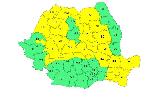 Cod galben de vânt, până miercuri. HARTA cu zonele vizate