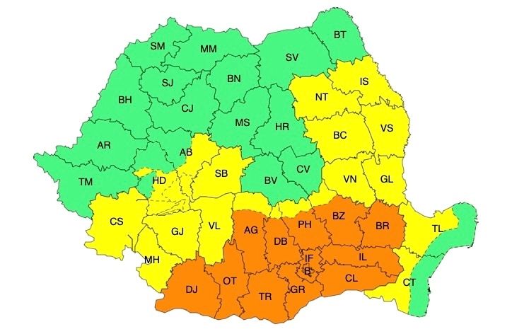 AVERTIZARE METEO COD GALBEN ȘI COD PORTOCALIU DE CANICULĂ