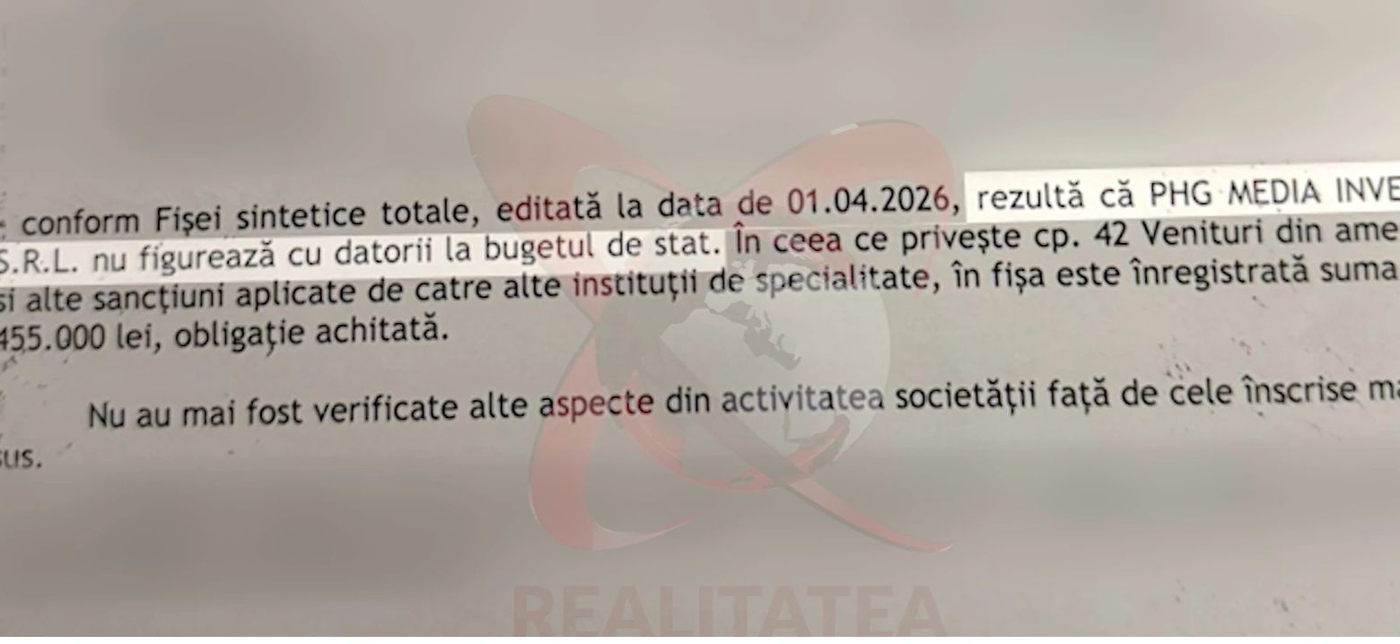 „Jurnaliștii Realitatea Plus au solicitat oficial de la ANAF să spună clar dacă în acel comunicat publicat este sau nu vizată Realitatea Plus, care este înregistrată sub firma PHG Media Invest SRL.”