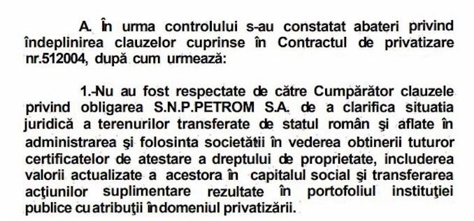 Dezvăluiri fără precedent în emisinea Culisele Statului Paralel, la Realitatea PLUS, despre jaful privatizării Petrom. Anca Alexandrescu a prezentat neregulile grave semnalate la vânzarea companiei. „În urma controlului s-au constatat abateri privind îndeplinirea clauzelor cuprinse în Contractul de privatizare nr. 5/2004”, arată Raportul Curții de Conturi din anul 2009.