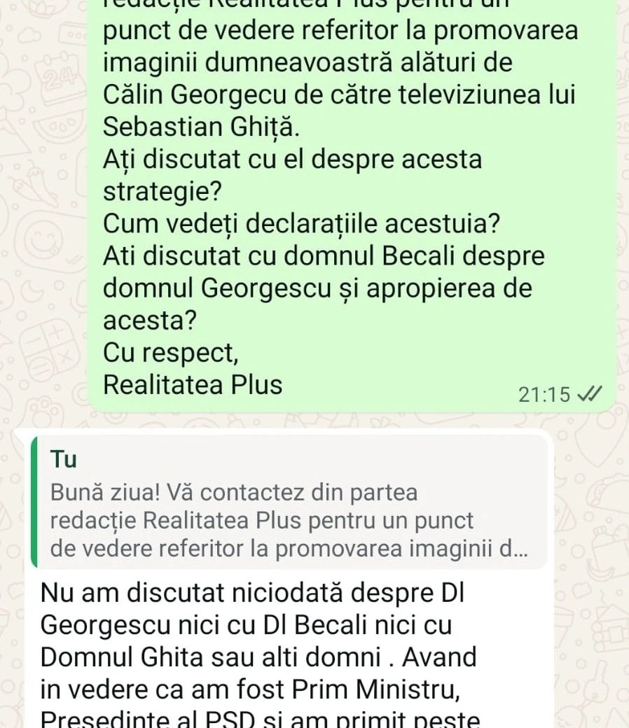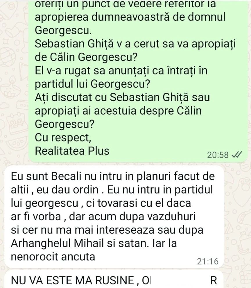 Realitatea PLUS a demascat însă minciunile propagate de România TV și a prezentat momentele în care apropiații lui Ghiță îi induceau în eroare pe români, pretinzând că ar susține suveranismul alături de politicieni care încercau să câștige capital de imagine folosindu-se de numele lui Călin Georgescu. Postul a solicitat puncte de vedere tuturor celor menționați. Sebastian Ghiță nu a răspuns, iar Victor Ponta a transmis că nu a discutat niciodată despre Călin Georgescu cu Ghiță sau cu Gigi Becali. La rândul său, Becali a fost întrebat dacă Ghiță i-a cerut să se apropie de Georgescu, însă omul de afaceri a reacționat cu injurii, în loc să ofere explicații. Pe de altă parte, Gelu Vișan afirmă că nu a mai vorbit cu Sebastian Ghiță din 2011 și consideră că atacurile acestuia la adresa lui Georgescu sunt „neîntemeiate”. Nici Marian Vanghelie nu a oferit clarificări, după ce a mințit că Georgescu și-ar fi făcut partid, preferând în schimb să lanseze amenințări la adresa Realitatea PLUS, a Ancăi Alexandrescu și a lui Maricel Păcuraru.
