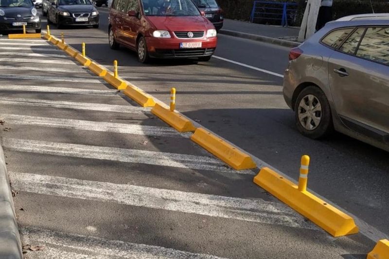 Vorbim despre montarea unor separatoare de sens pe zona hașurată, înainte și după trecerile de pietoni, care să împiedice parcarea autoturismelor ce obturează vizibilitatea.